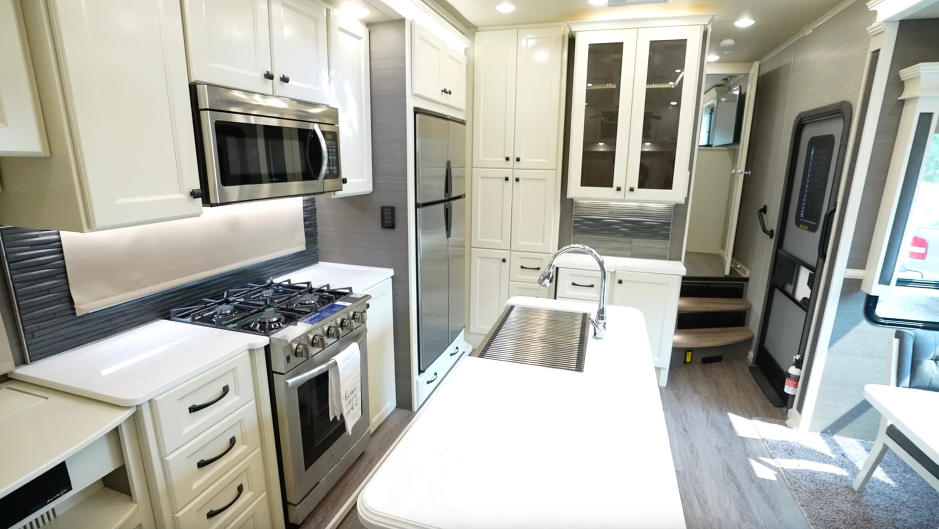 Vanleigh used a rolled sink cover (similar to what is pictured) however units receiving them wasn’t always consistent. We noticed when we were shopping in 2020 / 2021 some had them some didn’t. Our 34RLB came with one but wasnt the right size so we didn’t use it.