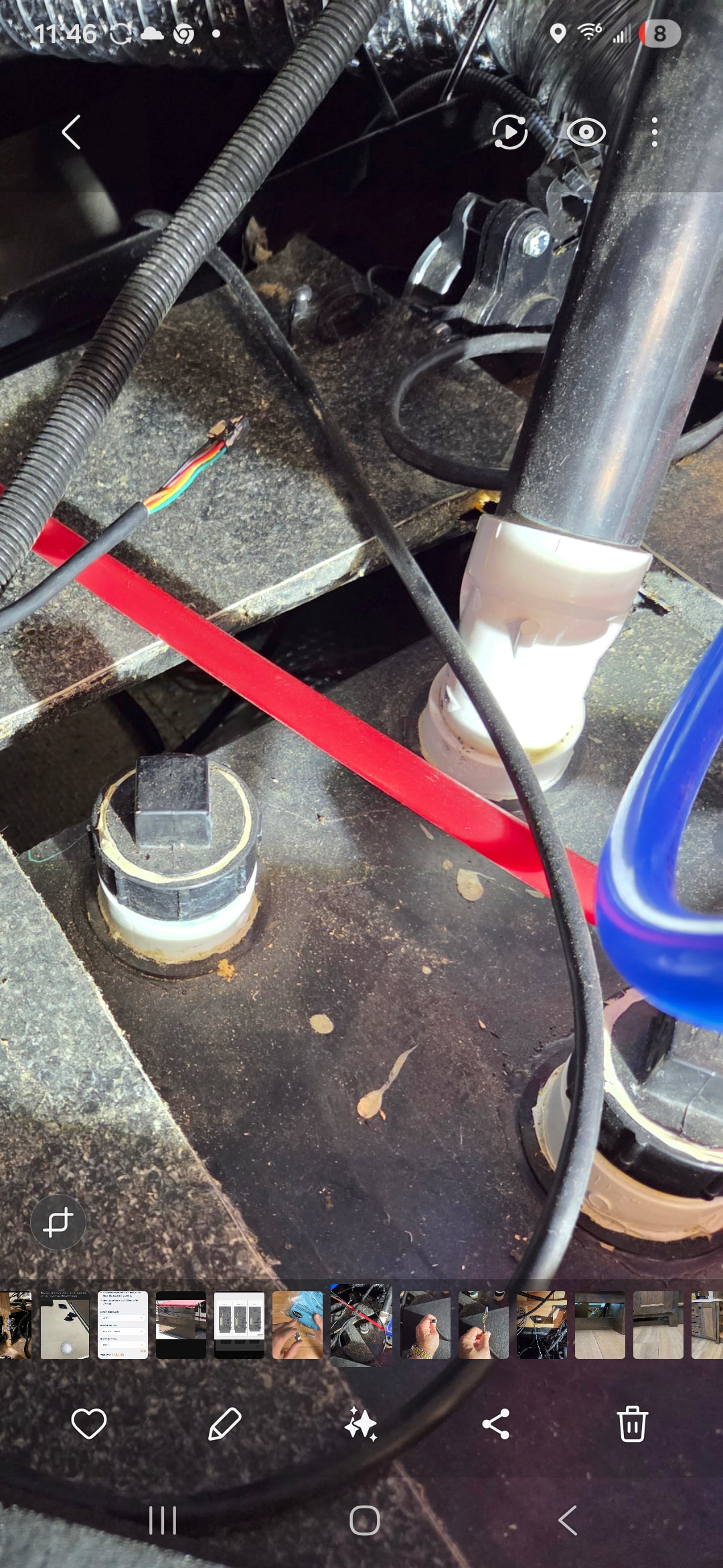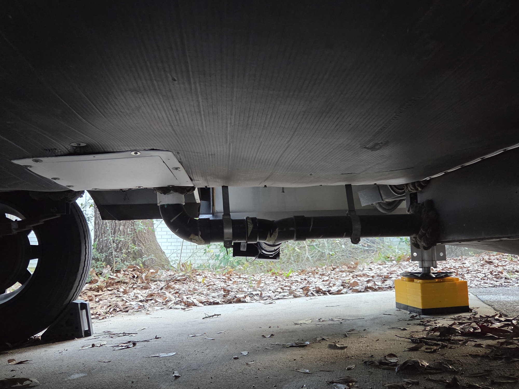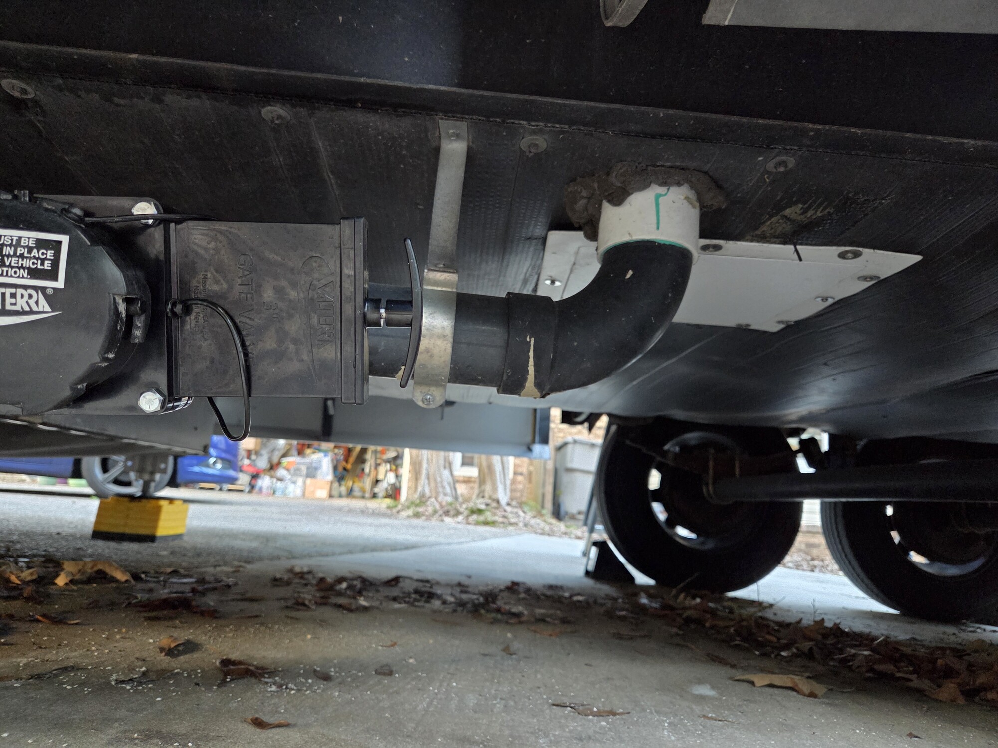 Thank you for your email. I am so embarrassed —the tank was empty… I was positive that I had emptied almost a week ago. But at least I know where it is now. I will have to cut the underbelly to get to it. There is no 8x8 panel on my floor, but I do see where the tank is. Can’t get to it from the inside.