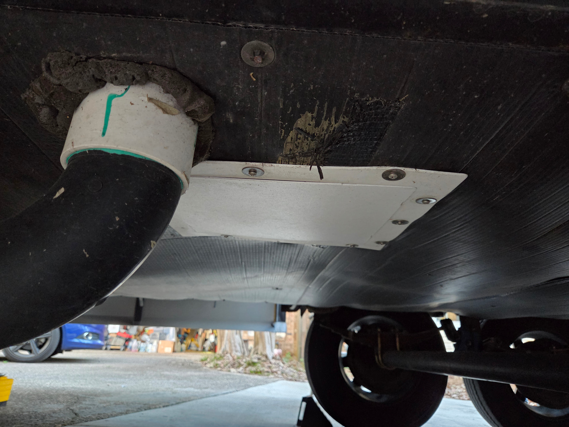 Ok so has anyone seen this before. This is a removable hatch/panel in the coroplast that is just in front of the front axle on the driver’s side of the rig. Could this perhaps have been installed to access the black tank valve when they are not functioning via the electric dump valve?
