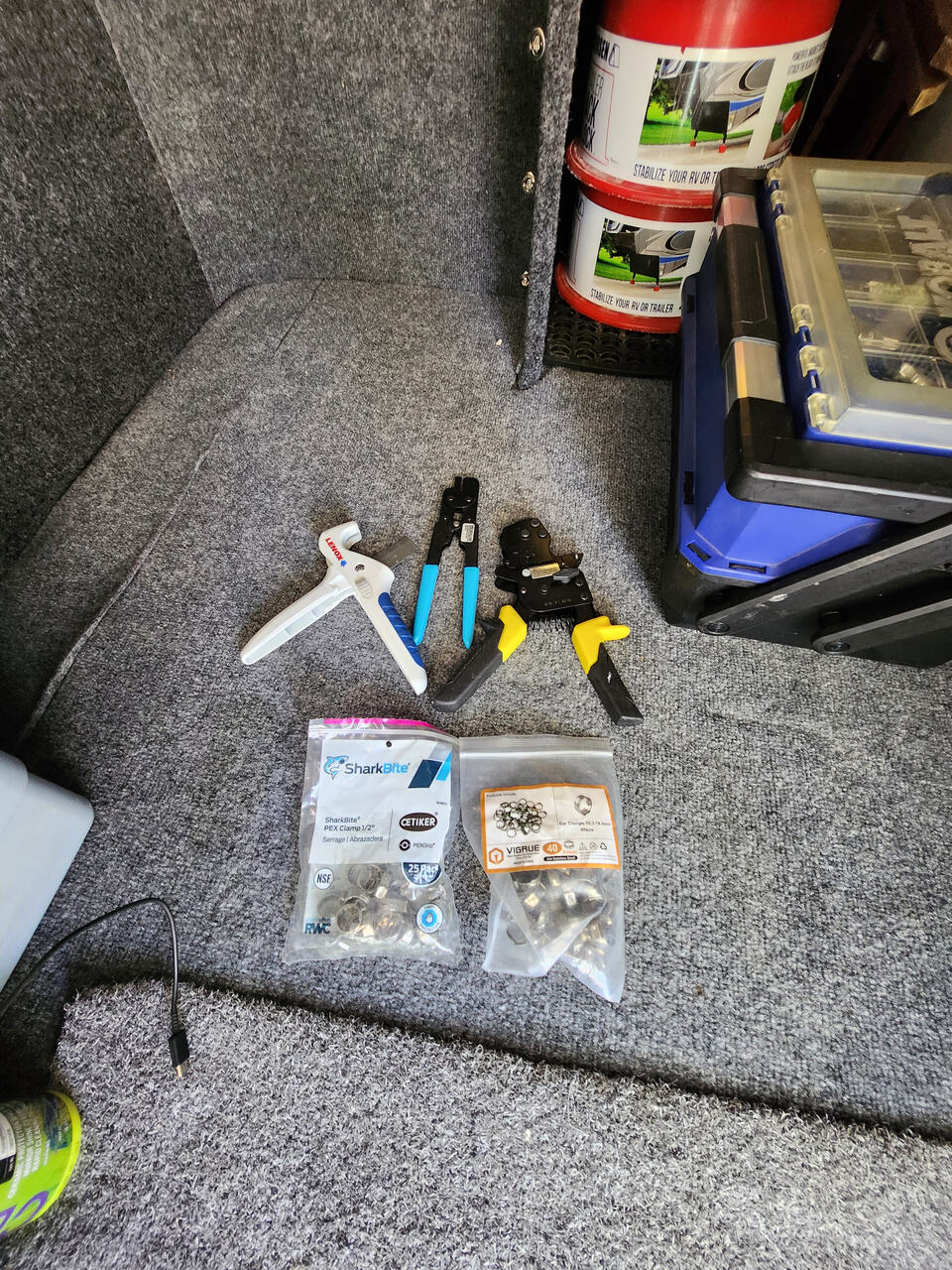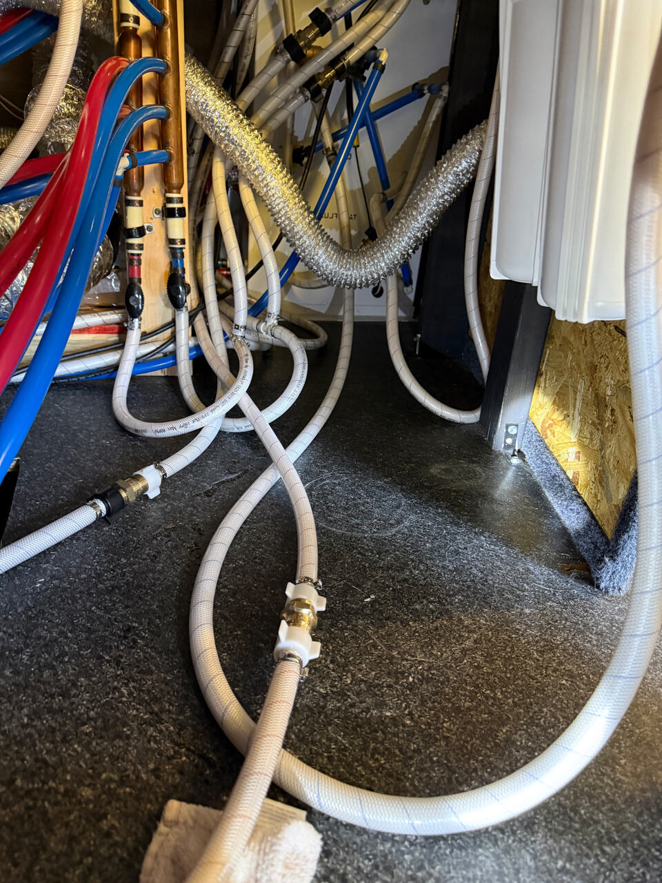 So I ordered another manifold 100ft of red & Blue 1/2” pex 100 1/2” pex clamps 15 each brass 1/2” t’s, 90 elbows and unions, various other fittings. All together about $500 dollars worth of supplies. I hope that I can make a better plumbing repair of the manifold and assorted plumbing attachments. I’m not sure if I will be able to replace all the white hose but I will reduce it down quite a bit and I hope the manifold will be better than that crap VanLeigh put in there.
