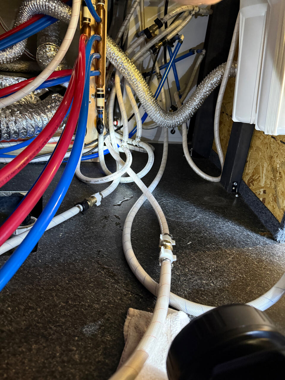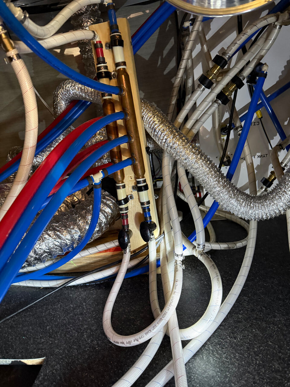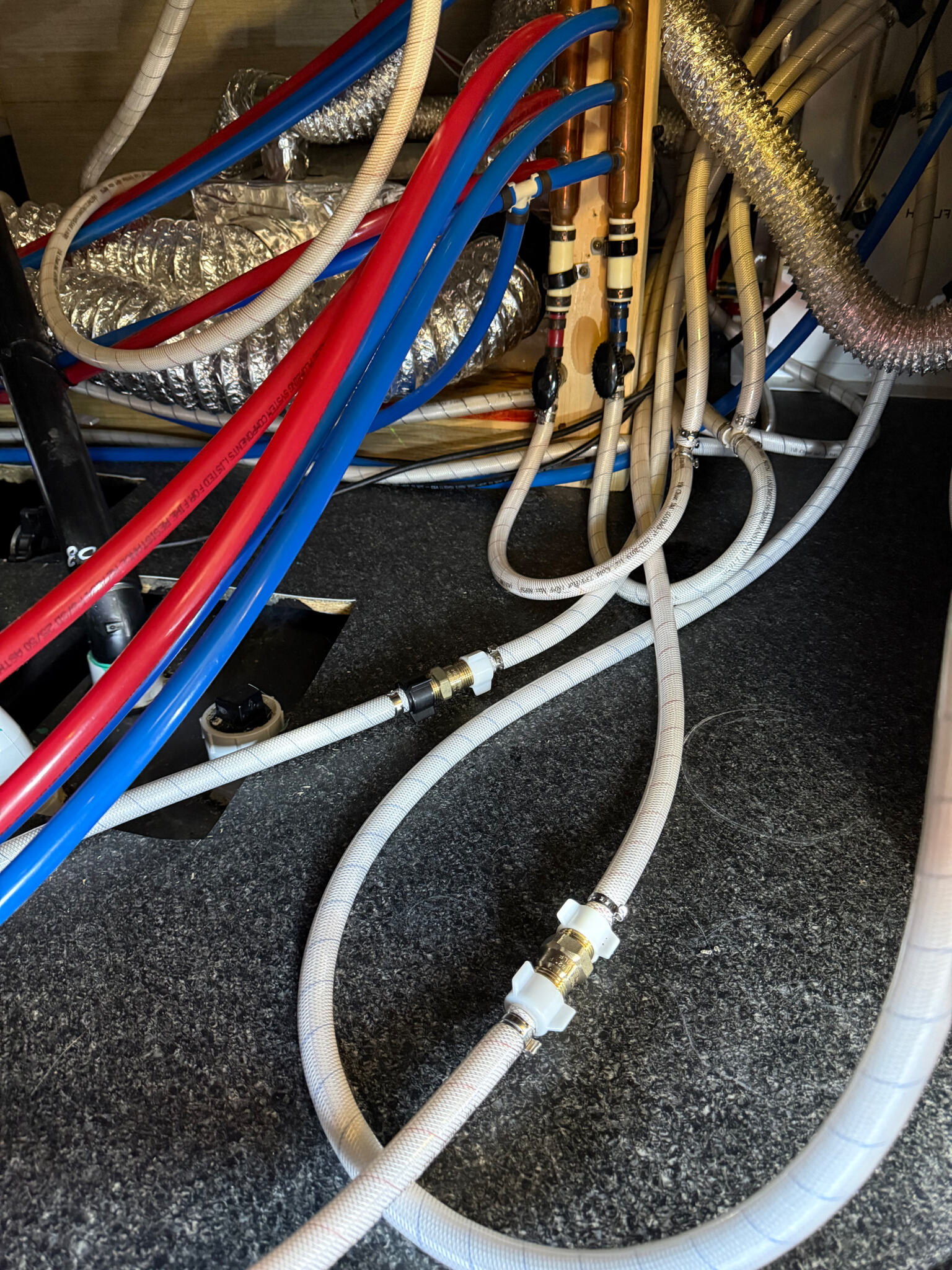 Hey Ralph, I’m interested in seeing what you end up doing with the plumbing mess. I’ve been thinking about it too. I had to look at the mess when I was replacing the wet bay manifold. I have two copper manifolds one right behind the wet bay and the other up front by the water heater.