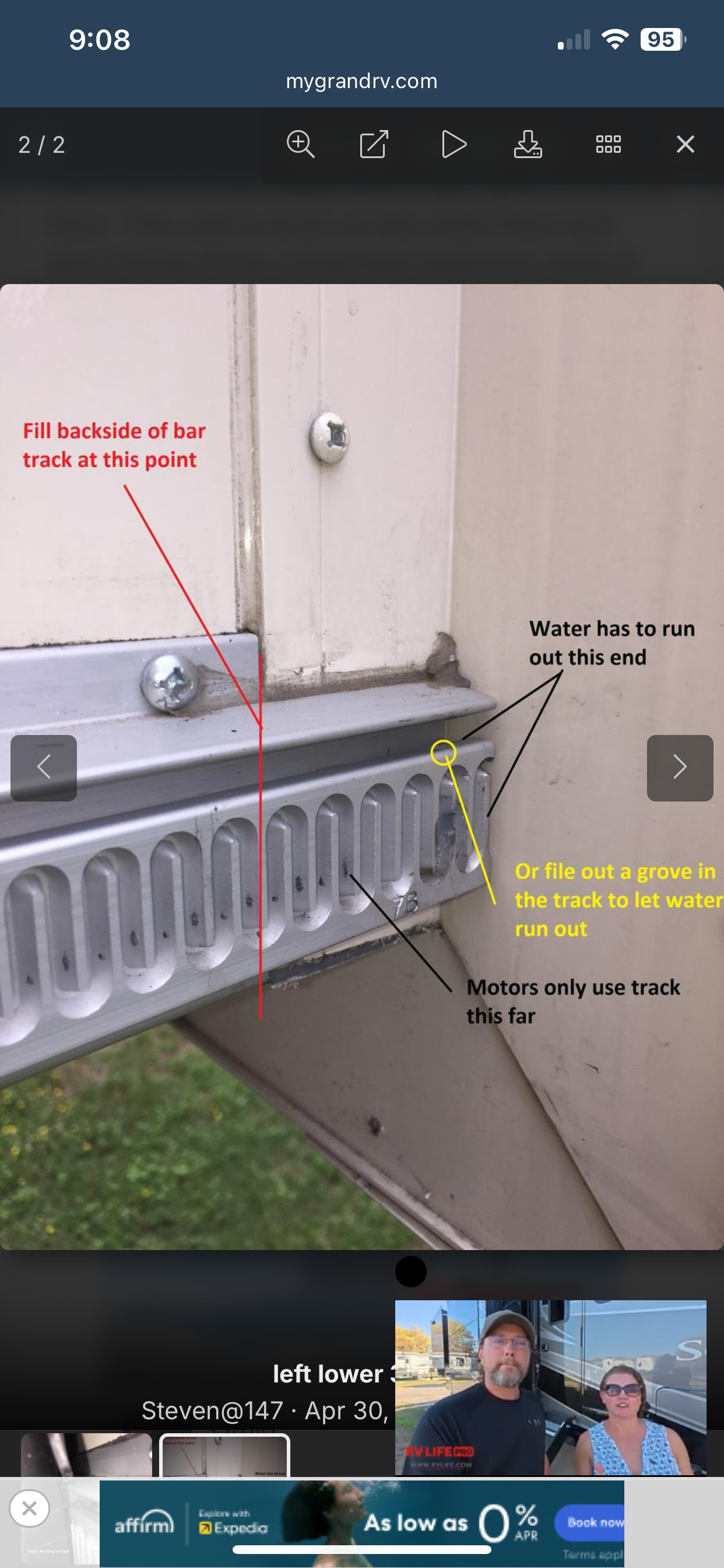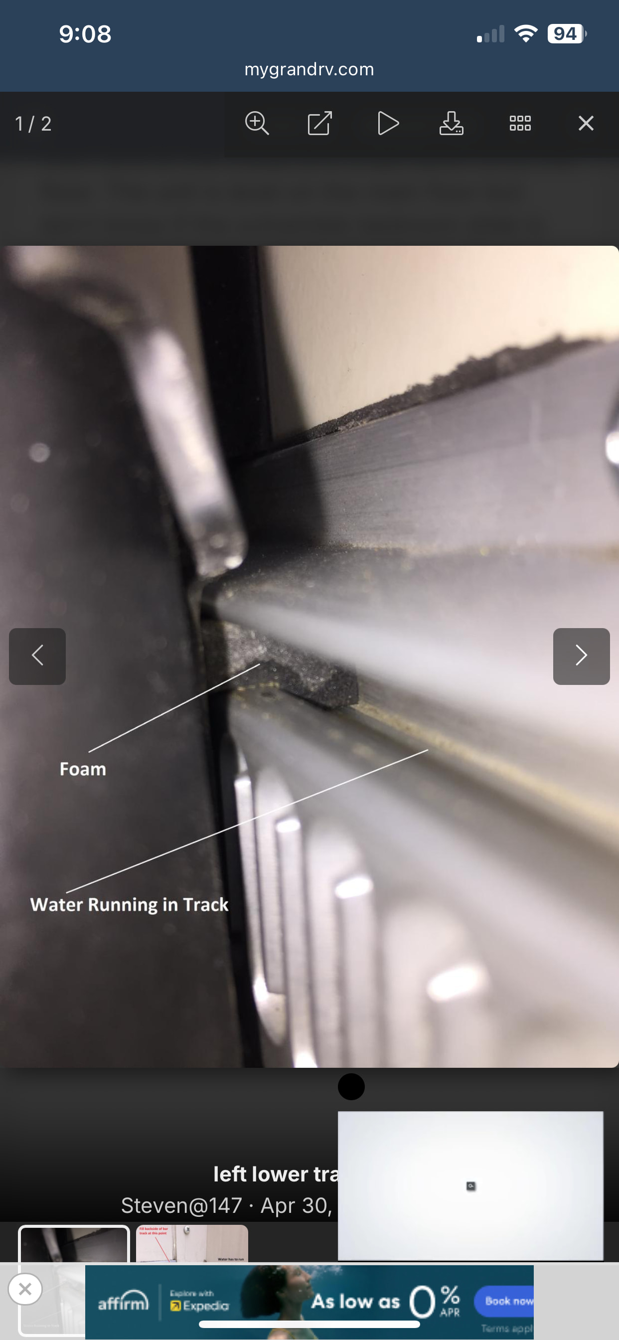 Ongoing with the schwintek on the bedroom and office water running along to the floor when raining i came across this post and the original article was to put some foam plugs in the rails. I tried that but when the slide goes in it pushes the foam to the other end of the rail. I did also read grand design had a workaround to apply silicone but Im unable to find the post . Anyone else had issues ?