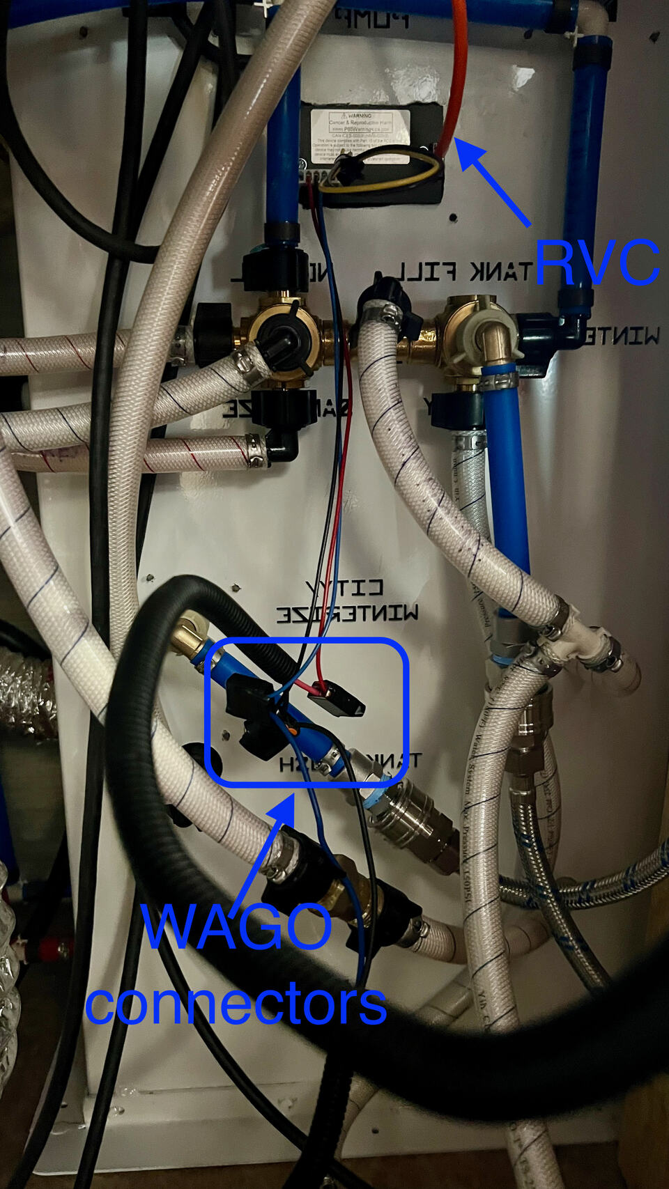 I installed in the bathroom and the wetbay. The bathroom was a strong consideration for me as it seemed prior to the shower or when sitting there… I would want to know the status of the tanks. I also installed in the wetbay for the obvious reasons when filling and emptying. I however wasnt as brave as Stuart and only drilled a dime size hole for the wiring and made an external mount. I used the bathroom for my RVC cable as it was a straight shorter drop to the RSi-9 board however I could have easily ran to either location.