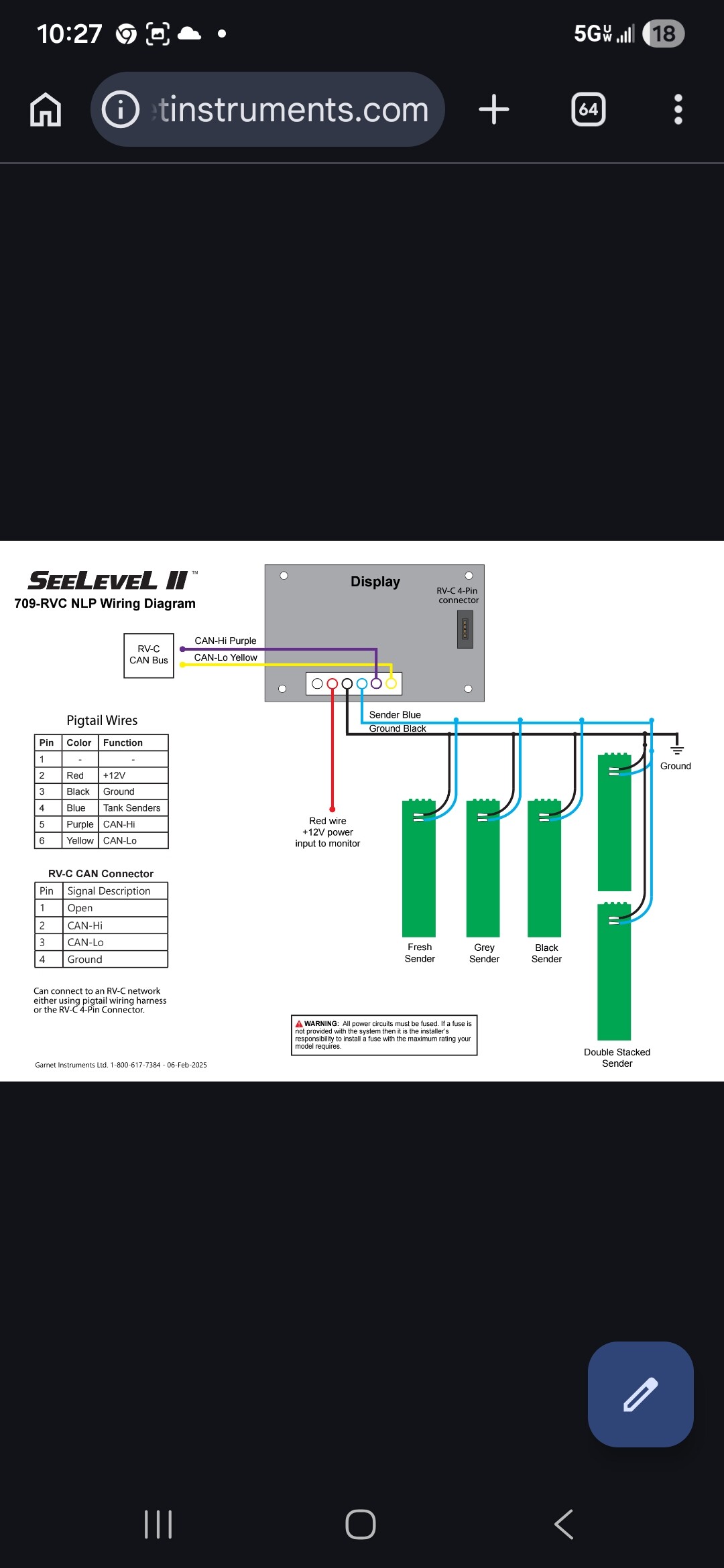 Also since this is using the RVC version SeeLevel do you not have to connect the Purple and Yellow CAN Hi-CAN Lo wires from the pigtail? From the attached diagram those appear to communicating via the RVC plug from the SeeLevel monitor to the RS1-9 board. Lastly, were you able to get the update from Spyder to disable the readings from the factory sensors and only display the SeeLevel readings?