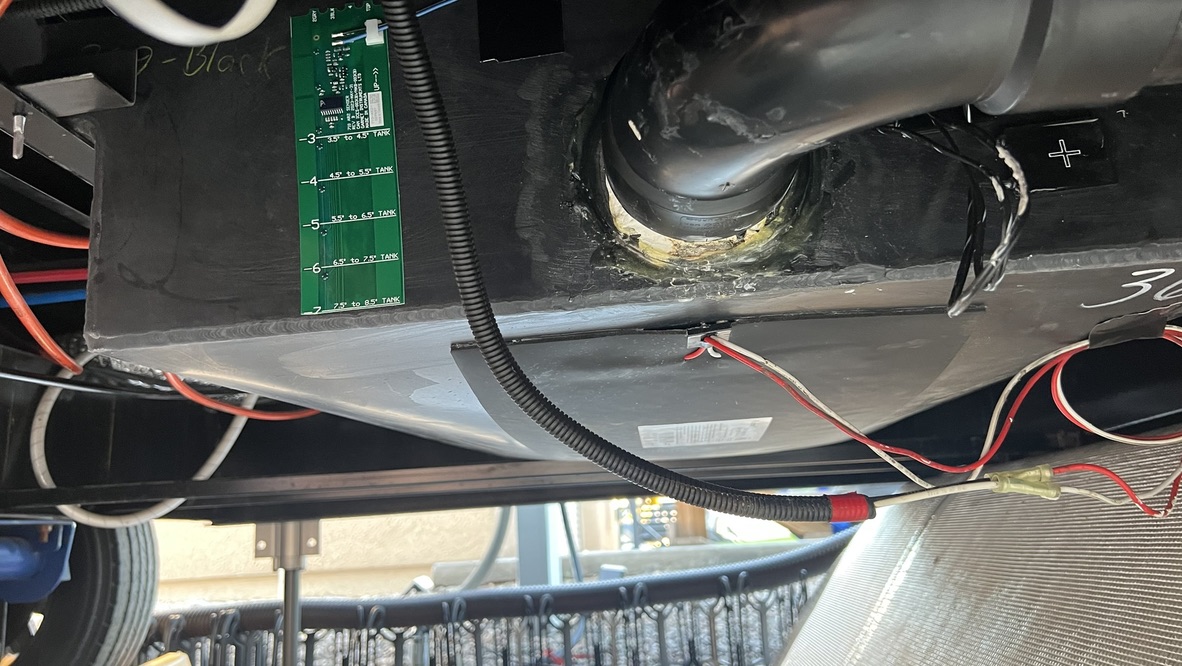 To gain access to the tanks I dropped both sides of the underbelly but only enough to locate and access the tanks. For the fresh I dropped the underbelly from the rear bumper to the wheels. For the black and gray I dropped the underbelly from where the drop frame starts to just past the sewer outlet. My tank layout went from Fresh → Black → Grey → Display.