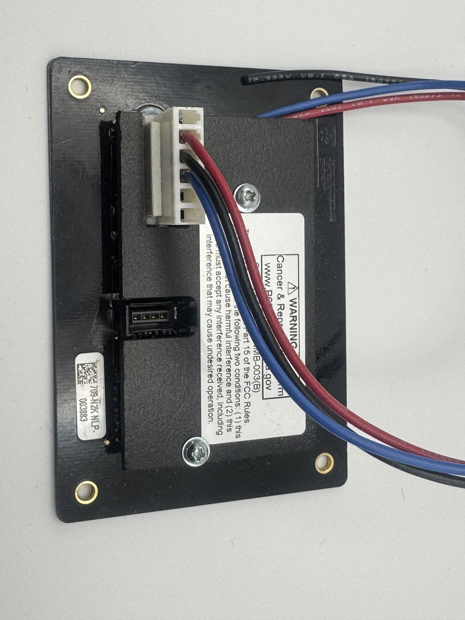 In the pic you can see the pigtail connections for the blue & black wires from the sensors and the red for 12VDC positive, the black also goes to the 12VDC negative bus bar. I used WAGO connectors to make all of the connections and wrapped them in electrical tape. That made it easy to disconnect and reconnect the wiring when I was adjusting the sensor locations.