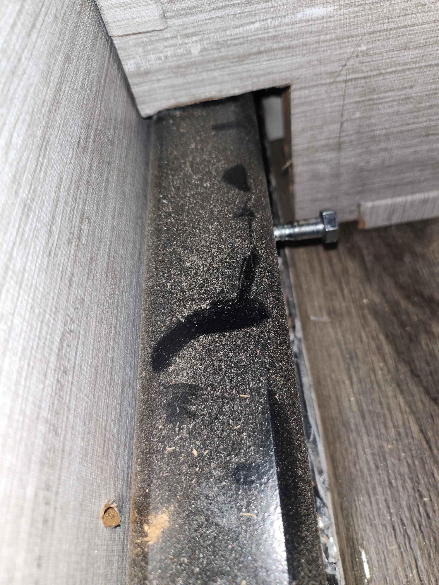 Today, I decided to remove the trim piece that holds and seals the underneath panel and side wall on the overhang section. I only did the one side so my view was through a 1 inch crack and an inspection camera. I was expecting to see the frame and plate with the aluminum wall on the plate. Instead, I saw the frame with the aluminum wall frame next to it. With the inspection camera I could see what looked like there could be a piece attached to the steel trailer frame but it would be sandwiched by aluminum wall framing.